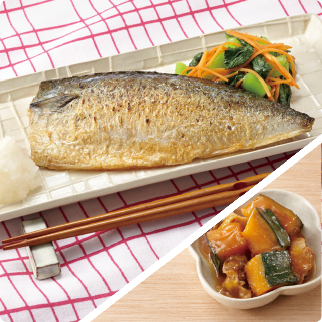 さばの一夜干し※消費期限はお届け日当日です。 かぼちゃと豚肉の煮物