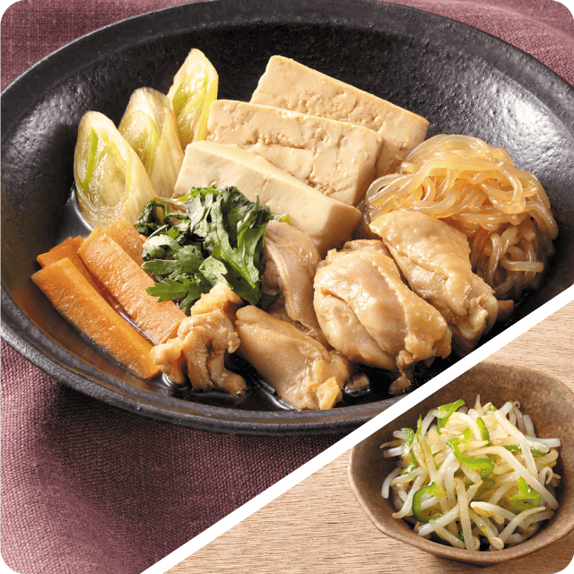 ごはんが進む♪甘辛鶏すき煮 もやしとピーマンのおひたし ※消費期限はお届け日当日です。