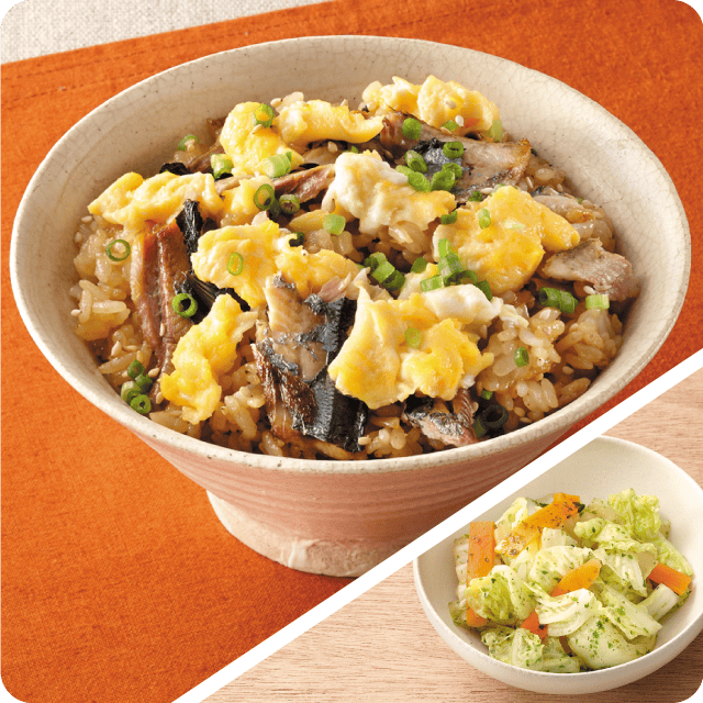 北海道産 焼きさんまのまぜごはん 白菜のあおさ和え