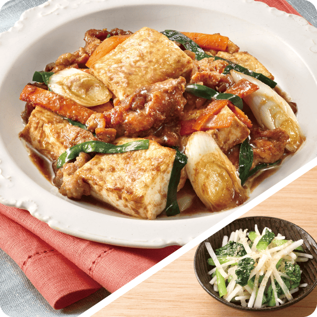 豆腐と豚肉のうま煮 小松菜と大根のごまサラダ