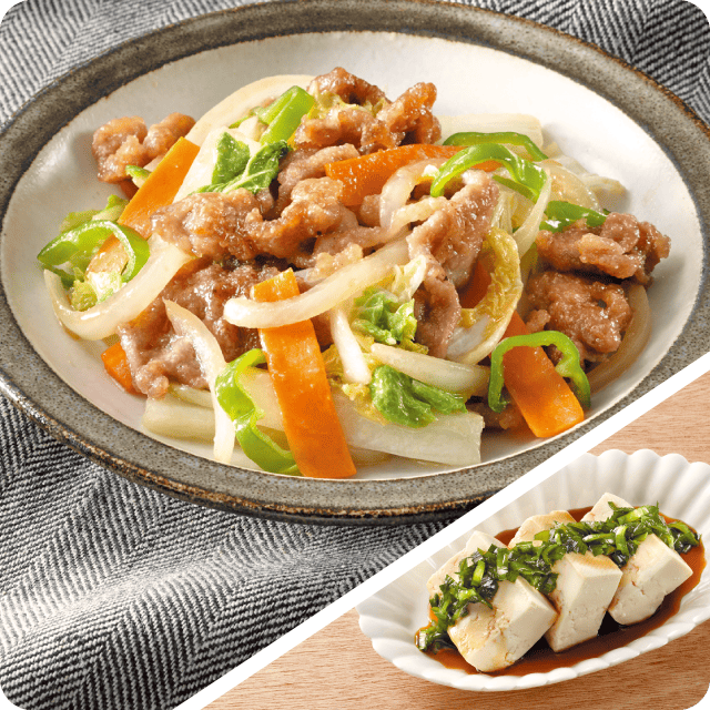 豚肉と白菜のみそ炒め 豆腐のニラ醤油かけ