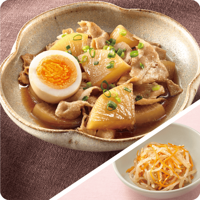 卵と一緒に!豚ばら大根 もやしと人参のナムル