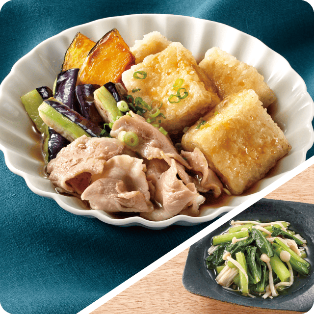 野菜と食べる揚げ出し豆腐 小松菜とえのきのおひたし