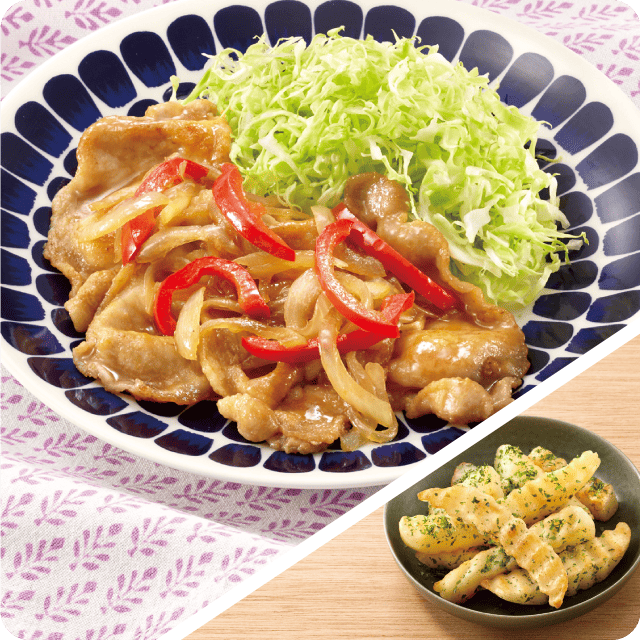 豚の生姜焼き フライドポテトのり塩和え