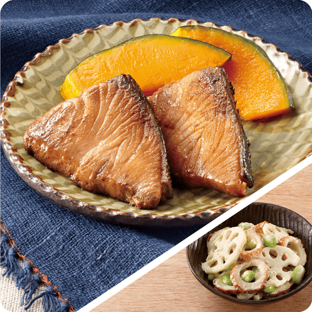 長崎県産ぶりの照り焼き れんこんとちくわのごまマヨ和え