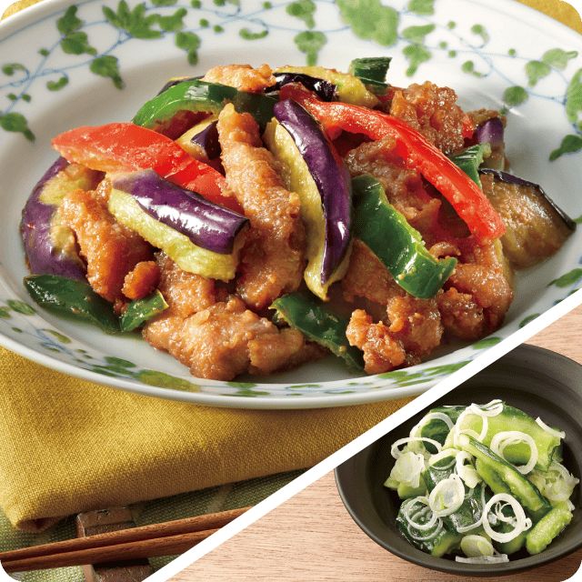 | 豚肉となすのみそ炒め | ||