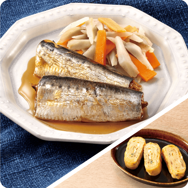 骨までまるごと食べられる♪いわしの生姜煮 なめたけ入り玉子焼き