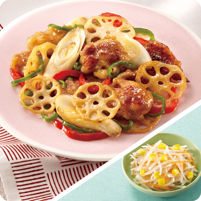 鶏肉とれんこんの甘酢炒め 大根サラダ ※消費期限はお届け日当日です。