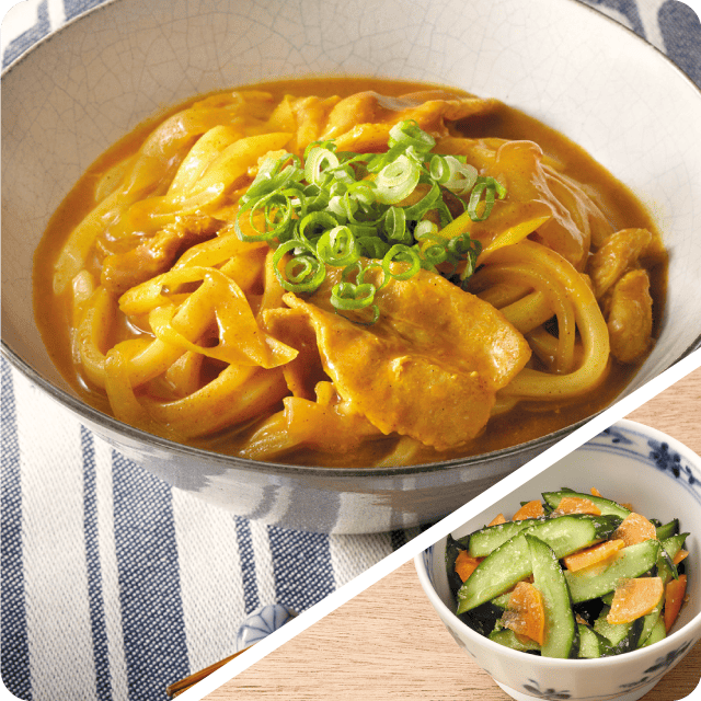 本格!スパイシーカレーうどん きゅうりのごま和え ※消費期限はお届け日当日です。