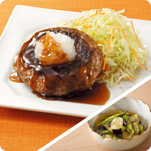 和風おろしハンバーグ なすとオクラの揚げびたし
