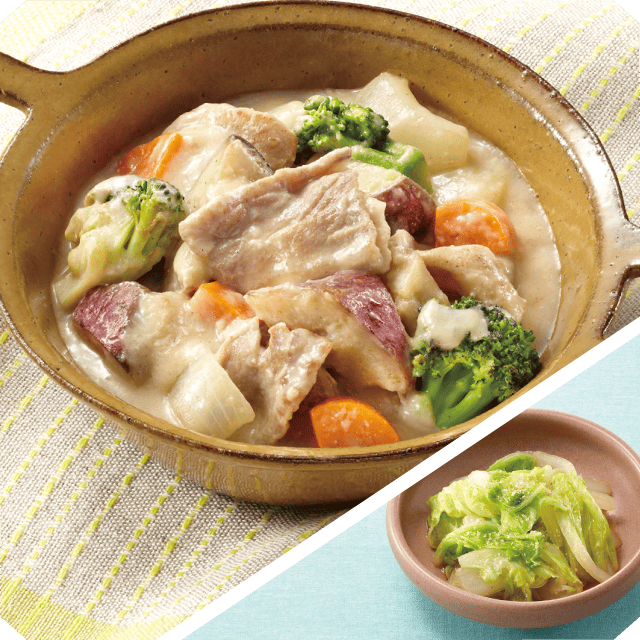 豚肉とさつま芋のまろやかみそクリーム煮 白菜のごま和え