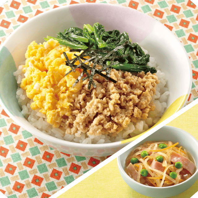| 3色鶏そぼろ丼 | ||