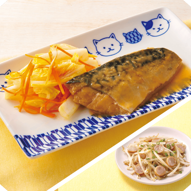ふっくらさばのみそ煮 もやしとウインナーのソテー