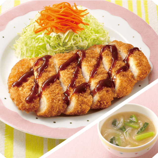 やわらかとんかつ 小松菜と玉ねぎのみそ汁