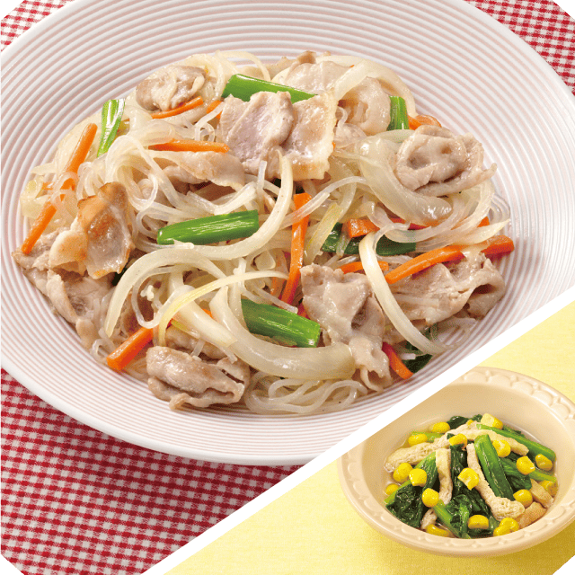 豚肉と春雨のあっさり炒め 小松菜と揚げの煮びたし