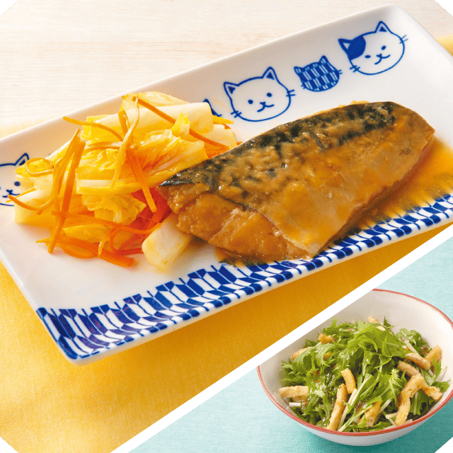ふっくらさばのみそ煮 水菜とカリカリお揚げのサラダ