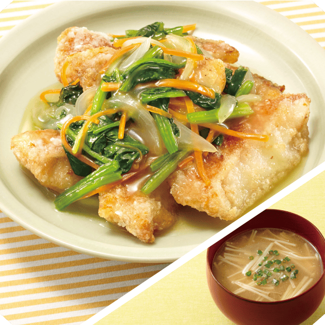 赤魚の唐揚げ和風あんかけ えのきとねぎのみそ汁