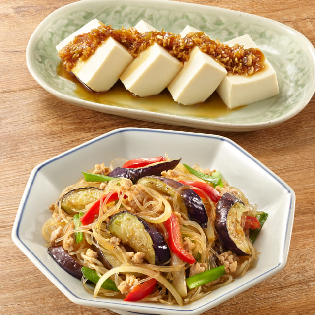 4種野菜の麻婆春雨 豆腐の香味ソースがけ