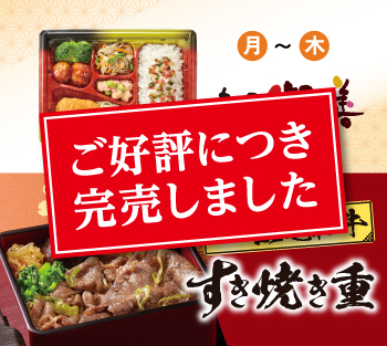 ●「国産黒毛和牛のすき焼き重」の栄養成分値はパッケージを、その他詳細については下記をご確認ください。