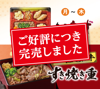 ●「国産黒毛和牛のすき焼き重」の栄養成分値はパッケージを、その他詳細については下記をご確認ください。
