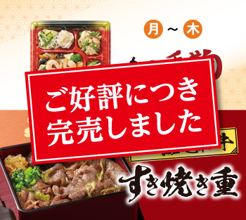 - ●11月24日週の5日間コース・7日間コースの金曜日(11月28日)のお弁当・お惣菜を「国産黒毛和牛のすき焼き重」に変更いただけます。